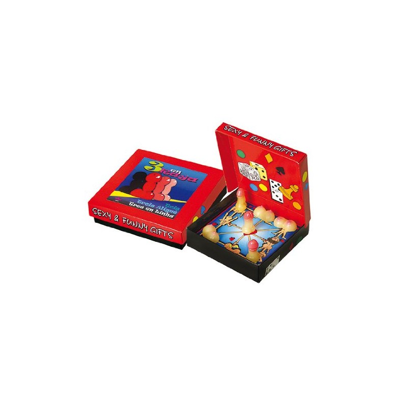 El tradicional juego de 3 en raya con piezas más divertidas y sexys, penes y pechos. Contenido- Un tablero de 3 en raya divertido y ambientado.- 3 fichas con forma de pene.- 3 fichas con forma de pecho.
