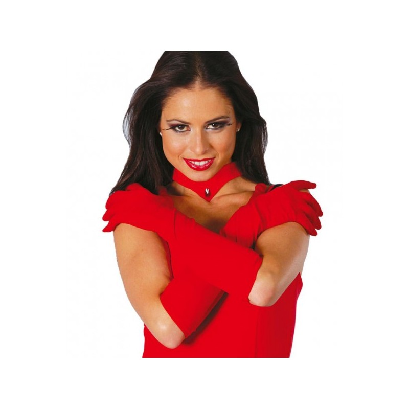 Guantes Largos rojos de 45 cm, Algodón. Perfectos como complemento de tu disfraz de Charlestón y también de Diablesa, también para Despedidas de Soltera.