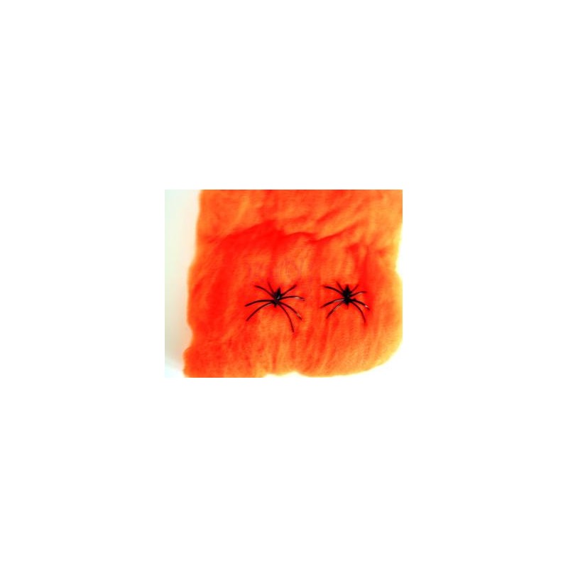 Telaraña Naranja con dos arañitas.20 GRS.Ideal para dar un ambiente terrorifico a tu fiesta de Halloween..Ahi varios colores,los encuentras en accesorios