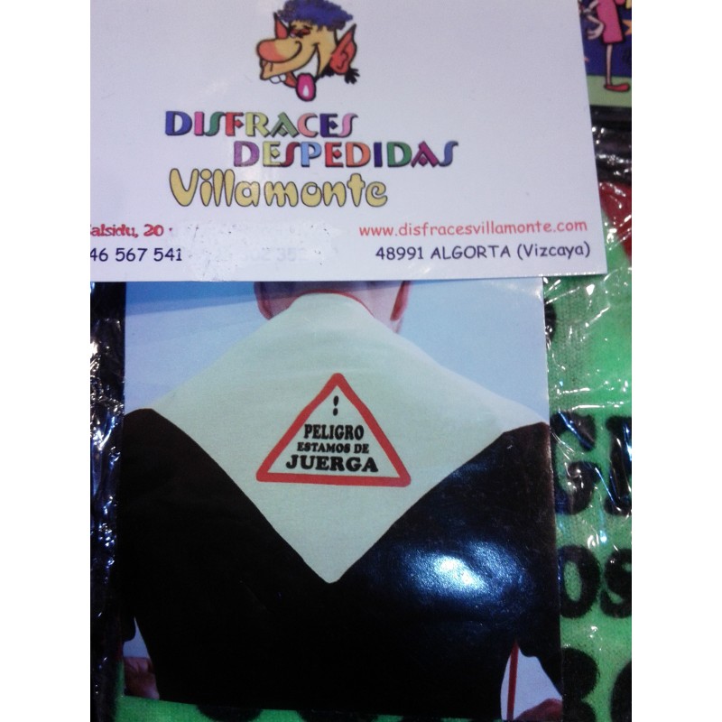 Pañuelo..Peligro estamos de Juerga!, verde. Unisex.