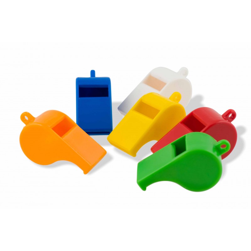 Silbatos de pvc. Multicolor. Bolsa.25und.