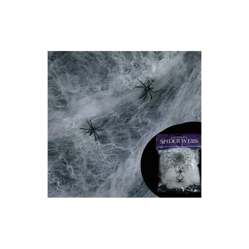 telaraña blanca 60g, con 6 arañas.Completa tu decoracion de halloween con esta Telaraña en color blanca, ideal para tu fiesta de disfraces de halloween