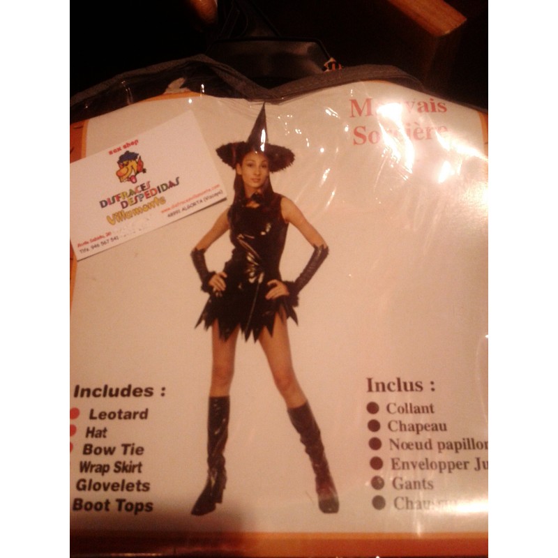 Disfraz de Bruja Sexy,Negro polipiel.Incluye botas,guantes,falda,gorro,camisa y pajarita