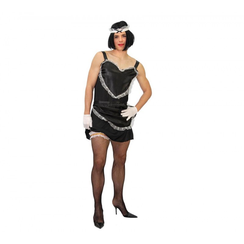 Disfraz Criada,Camarera,Sirvienta..Vestido negro,con puntilla blanca,delantal,cofia y liga ..Talla Única,para Hombre