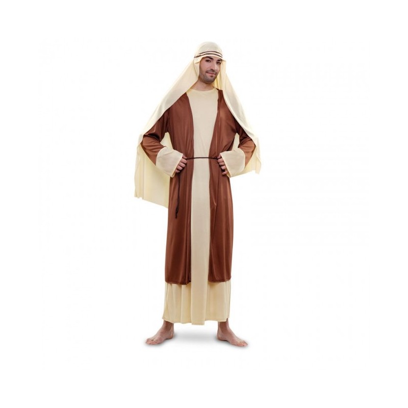 Disfraz de San José compuesto por pañuelo para la cabeza, túnica, abrigo, cinturón y cordón cabeza. Talla M/L