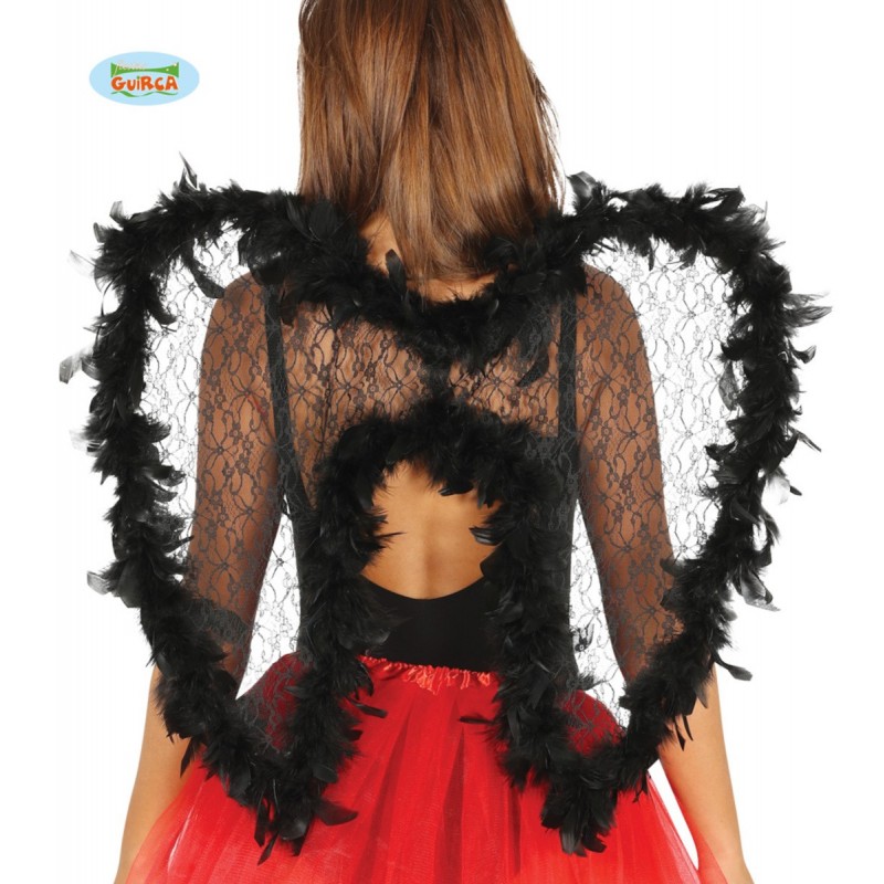 Alas negras 55x70cm ..encaje y rematadas en pluma negra.