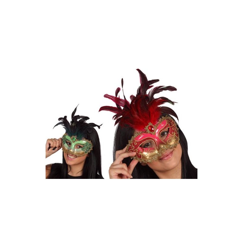 Mascara veneciana.Con plumas.Colores Rosa o Verde