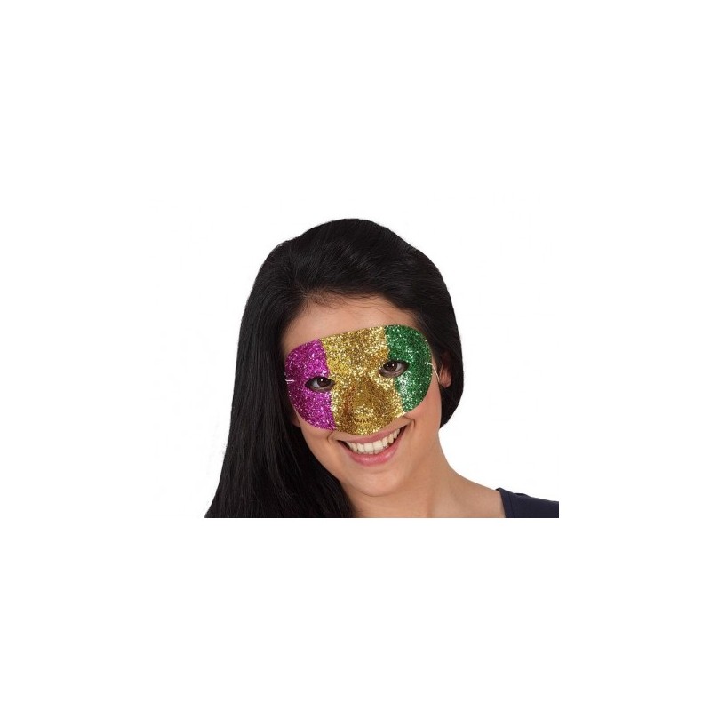 Antifaz purpurina-Glitter...en un antifaz van los tres colores..rosa,oro y verde