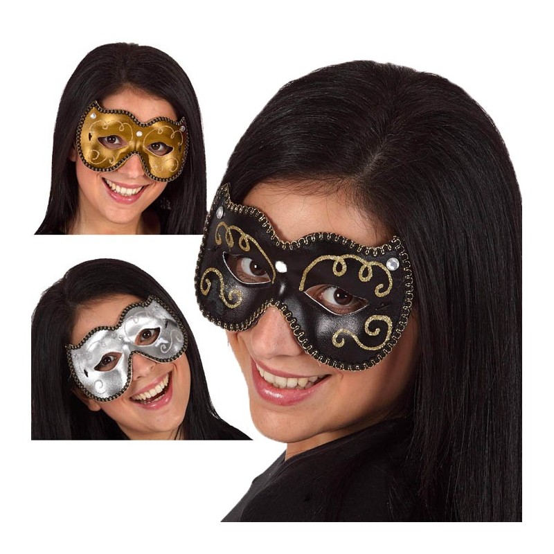 Antifaz deVeneciano .Tres colores, Plata,DoradoyNegro