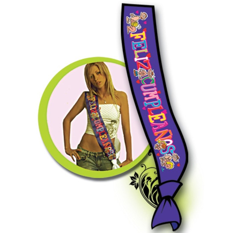 Banda de cumpleaños multicolor con dibujos y texto: "Feliz cumpleaños". El complemento perfecto para tus fiestas de cumpleaños.