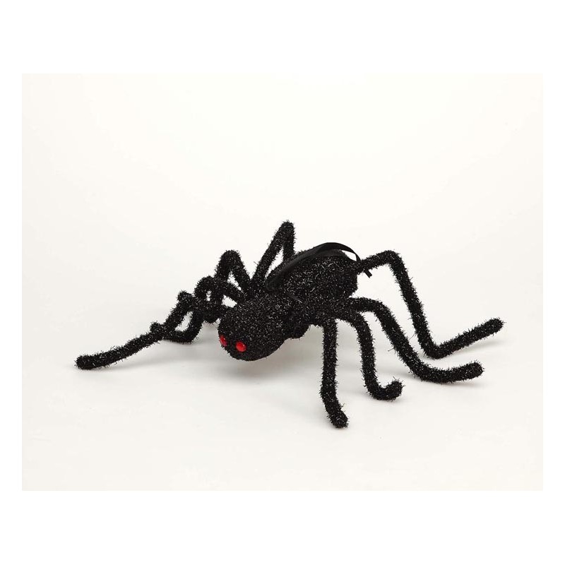 Araña Negra Brillo .Si estás pensando en decorar tu fiesta,de Halloween no puedes dejar escapar Araña negra con purpurina 14cms, para crear un ambiente perfecto y asustar a tus amigos..Puedes colgarla o ponerla sobre sus patas.