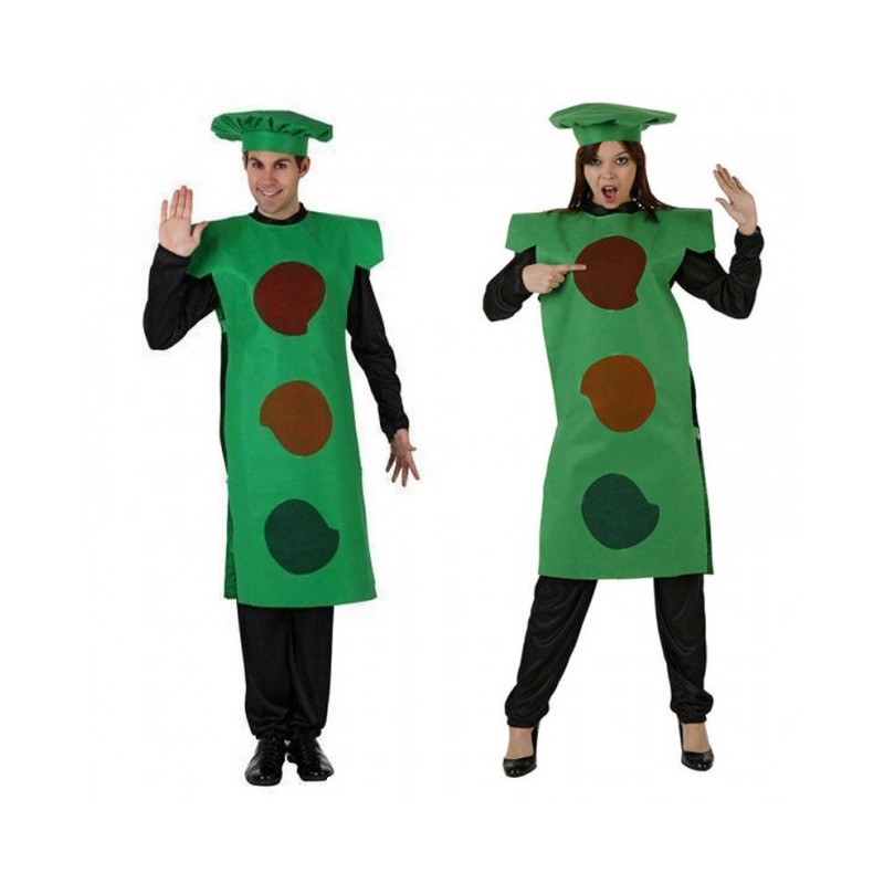 El disfraz de Semáforo ,Unisex,incluye: Peto verde, camisa, pantalón y tocado.