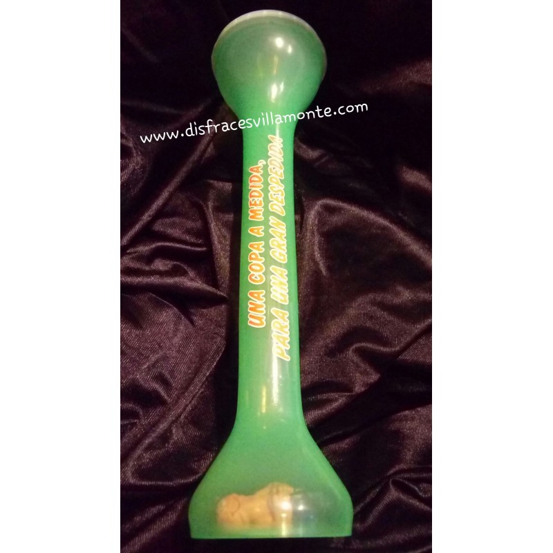 Vaso medidor,color verde..Despedidas..con el texto "Una copa a medida,para una gran despedida" y por detras..6 textos de medidas..empezando por abajo