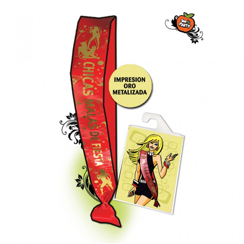 Banda "Chicas malas de fiesta",Roja. Ideal para tu despedida de soltera o de cumpleaños..