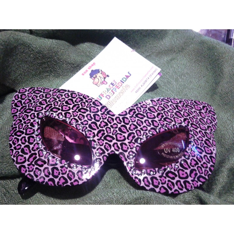 Gafas con forma de antifaz.Pueden servir para gata. Decoradas con perlitas alrededor de los ojos.Con dos tonos de rosas.