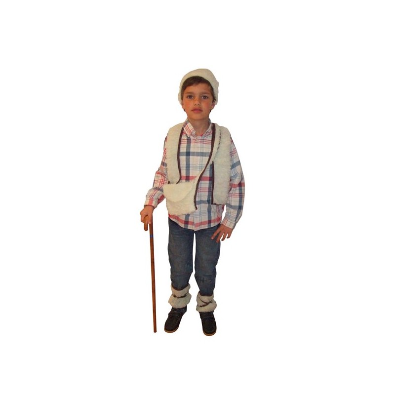 Disfraz de Pastor o Aldeano Perfecto para ir al cole en estas fechas,tambien sirve para Aldeano con el pañuelo de arrantzal.Ponte guapo en Navidad.Incluye:Chaleco,zurron,gorro y polainas de borregito.