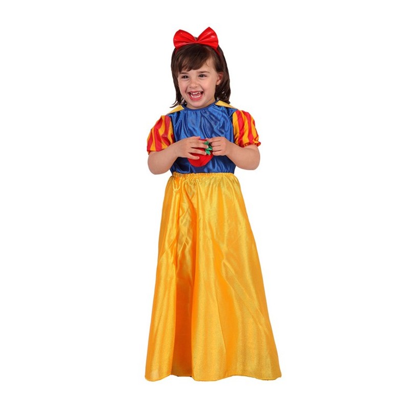 Disfraz de Blancanieves largo. Incluye vestido manga corta y lazo para el pelo.