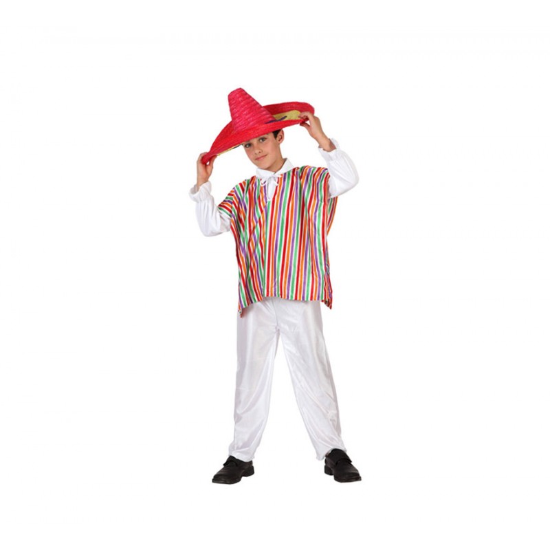 Disfraz de mexicano,pantalon blanco y poncho colores.