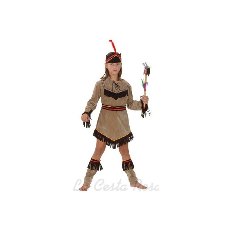 Disfraz de India. Talla 10-12. Incluye Vestido marron suave,con manga larga,flecos marron chocolate. ,Cinta para el pelo,Cinturon y Cubre-botas.tambien tienes los complementos en Accesorios.