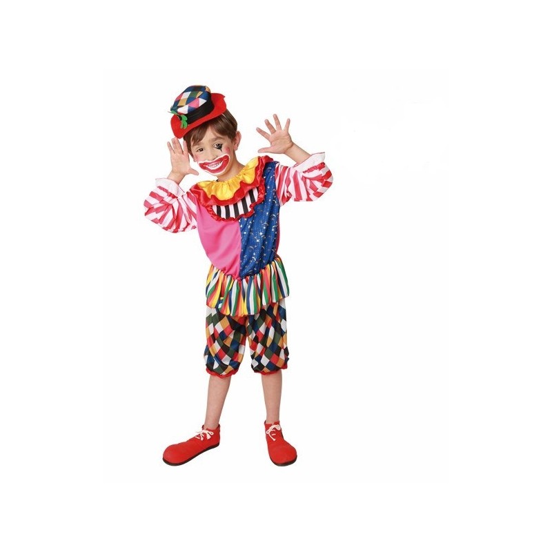 Disfraz de Payaso .Traje entero.Colorido,Pantalón hasta la rodilla,Manga larga,y gorro