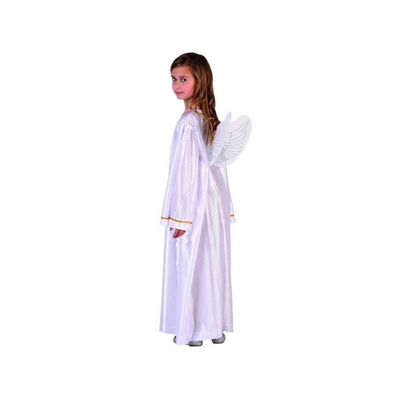 Disfraz de Angel blanco,con alas.Vestido largo blanco con pasamaneria dorada y alas.Ideal para esos angelitos que tanto queremos.Talla 10-12 años