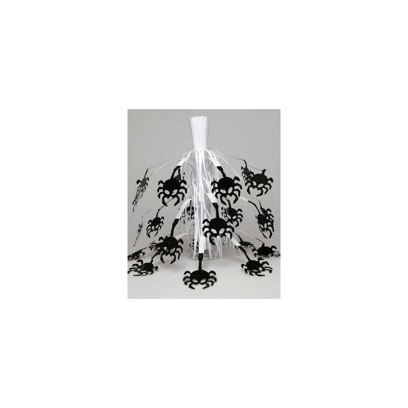 Lampara o Centro de mesa. Arañas,Decoración Halloween.Color blanca con arañas negras.pvc