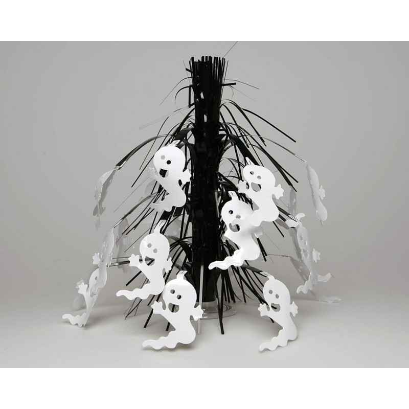 Lampara o Centro de mesa. Fantasmas,Decoración Halloween.Color blanca con arañas negras.pvc