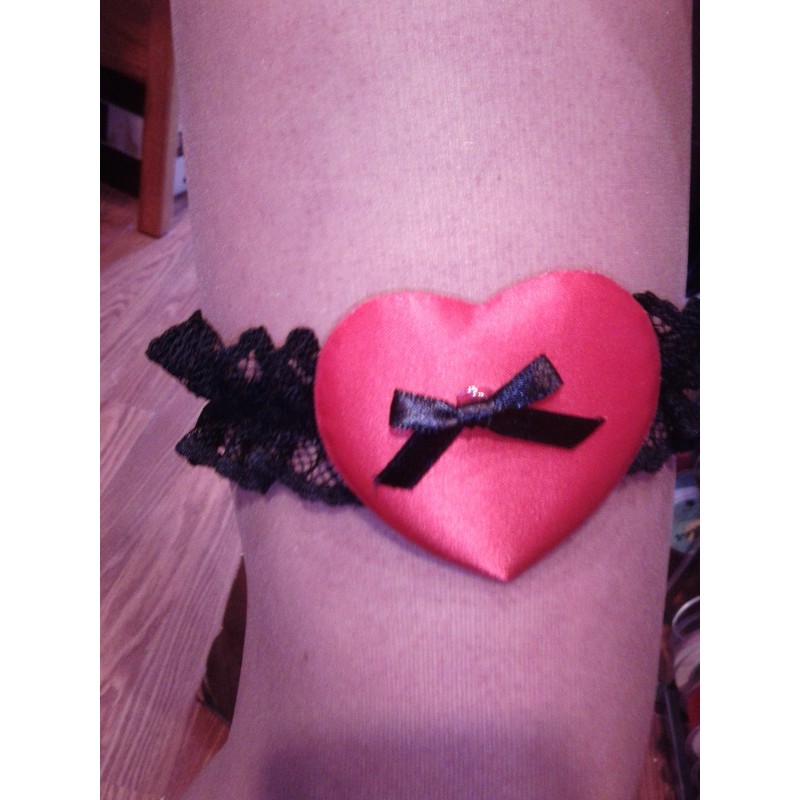 Liga de puntilla Negra, con corazon rojo.