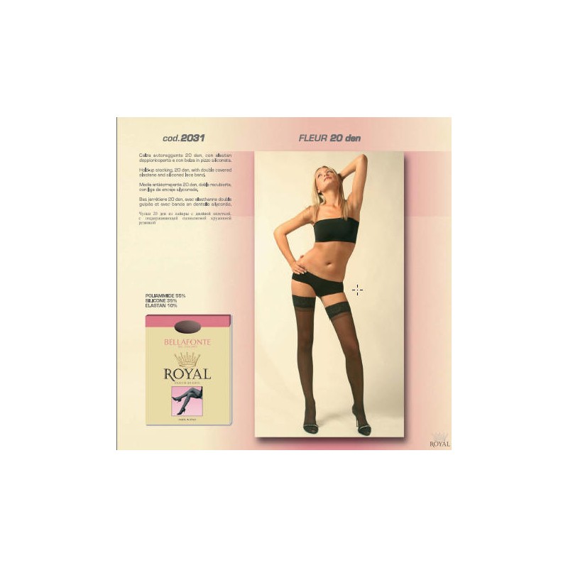 Media antiderrapante 20 den,doble recubrimiento con Lycra.Liga de encaje siliconada. Planchada con pie.