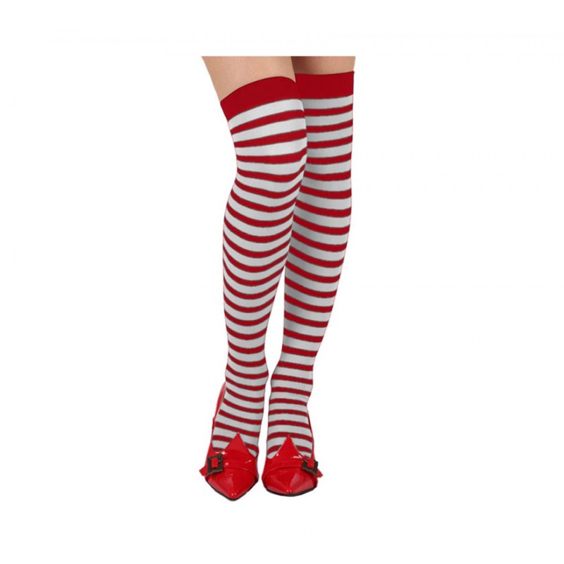 Medias de Liga a rayas blancas y rojas ..ideales para Elfa, Mamá Noel, Duende, Marinera o Caperucita.