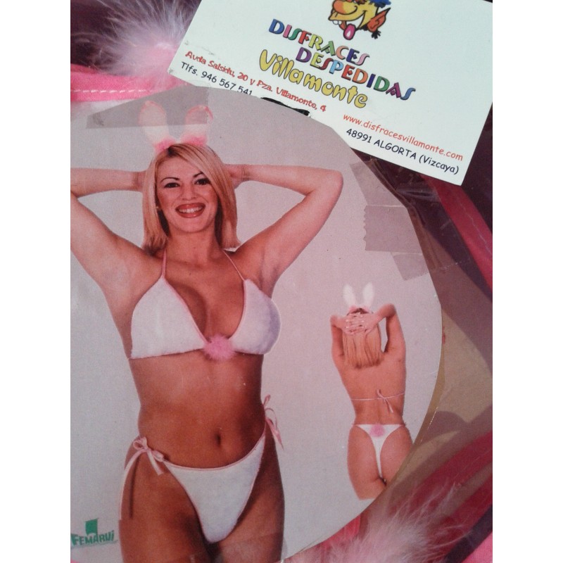 Lencería de Conejita.TallaM. Conjunto de 3 piezas,Tanga,Sujetador y Orejitas.Colr blanco y rosa.