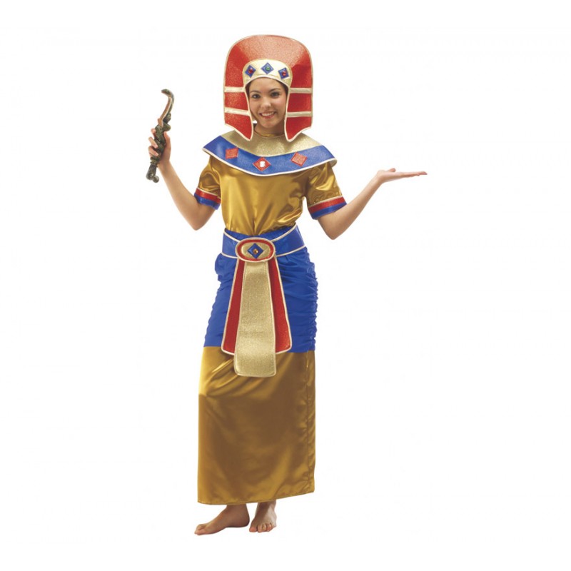 Disfraz de Egipcia para mujer.Incluye vestido, falda, cinturón, cuello y turbante.