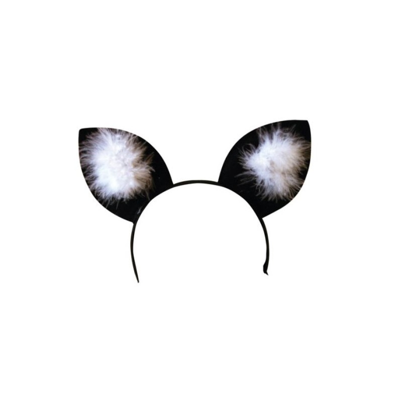 Diadema con orejas de gatita y marabú, perfecta para complementar un disfraz de felina o bien para utilizar en despedidas de soltero/a.