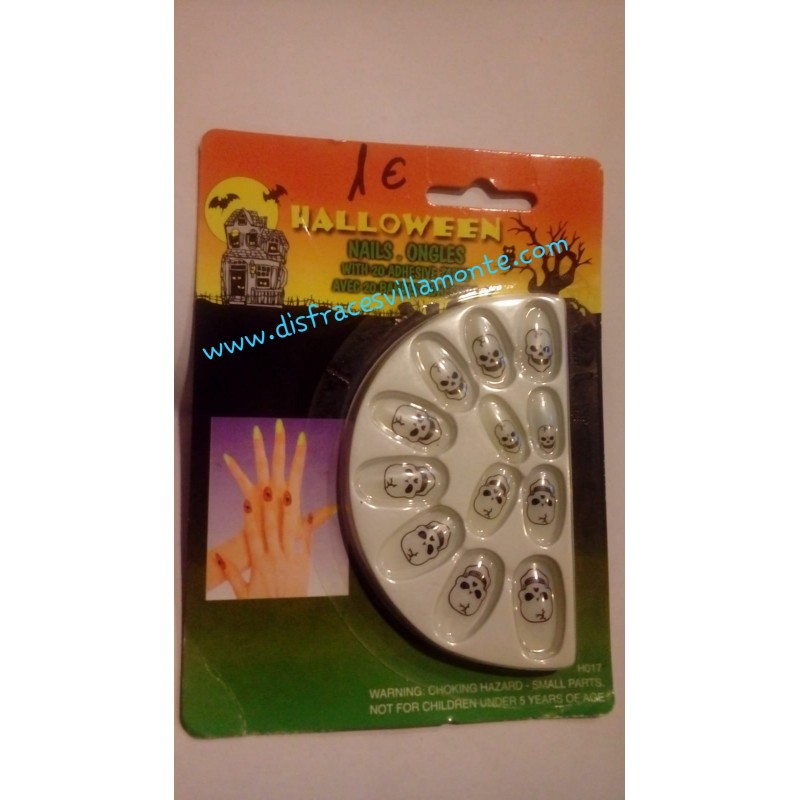 Uñas postizas con Calaveras-Halloween Ideales para complementar tu disfraz,se pegan con adhesivo o celo de dos caras