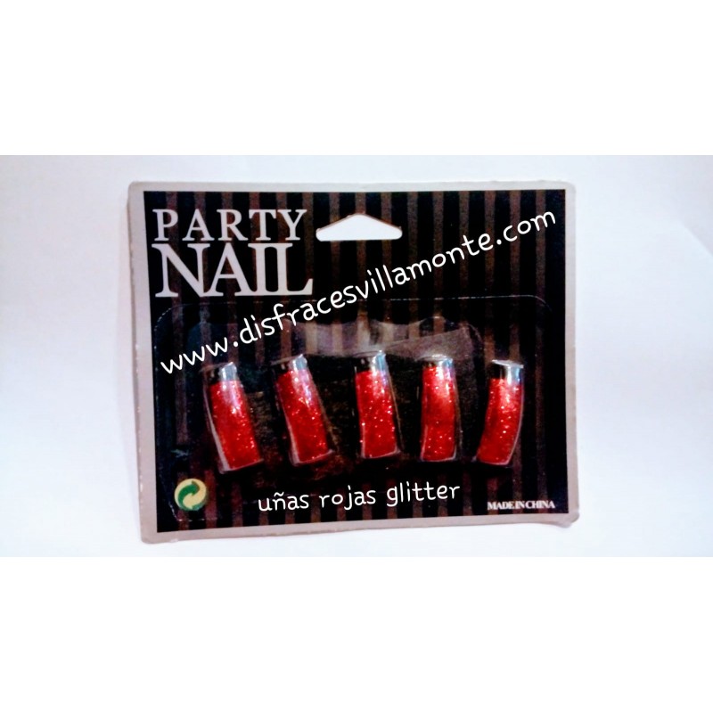 Uñas postizas,glitter Roja..Se pegan con adhesivo o celo de dos caras