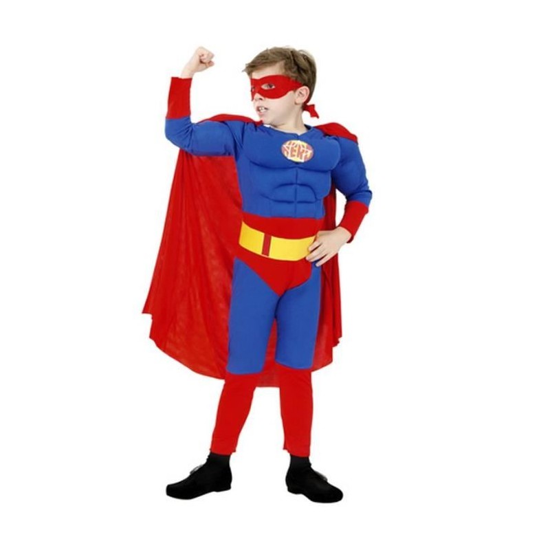 Disfraz de Superhéroe musculado Talla 10-12 contiene: mono,capa y antifaz