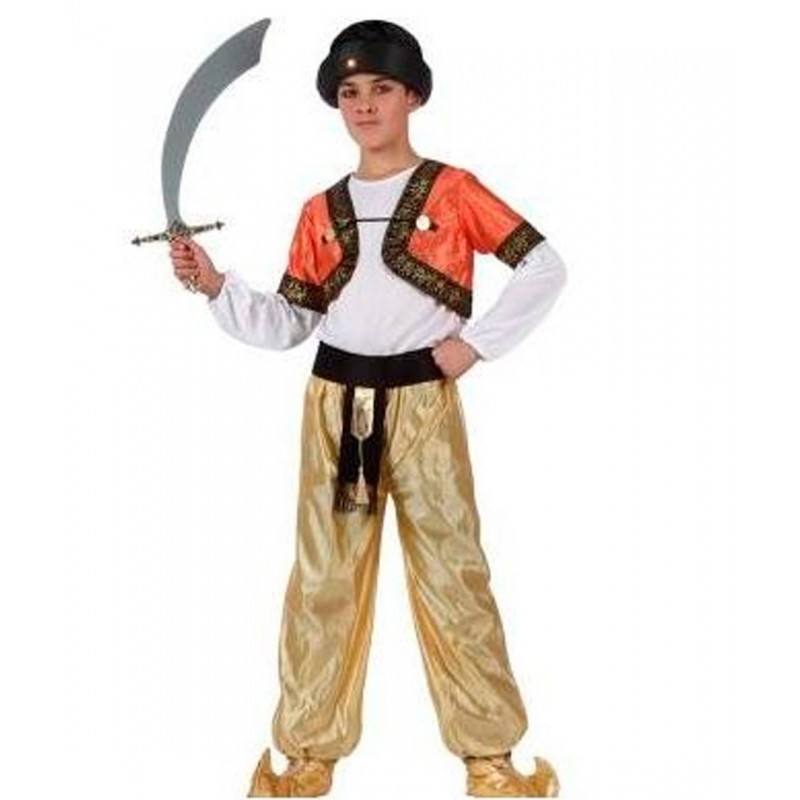 Disfraz Príncipe Árabe-Aladino-Moro-Paje. Navidad ...talla 5-6 años Compuesto:gorro,chaleco,camiseta,cinturón,pantalón y babuchas.