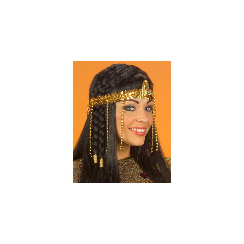 Diadema Egipcia-Cleopatra.Con su serpiente icónico y sus perlas en cascada, esta diadema de oro elástica será un complemento esencial para su reina traje de Cleopatra.