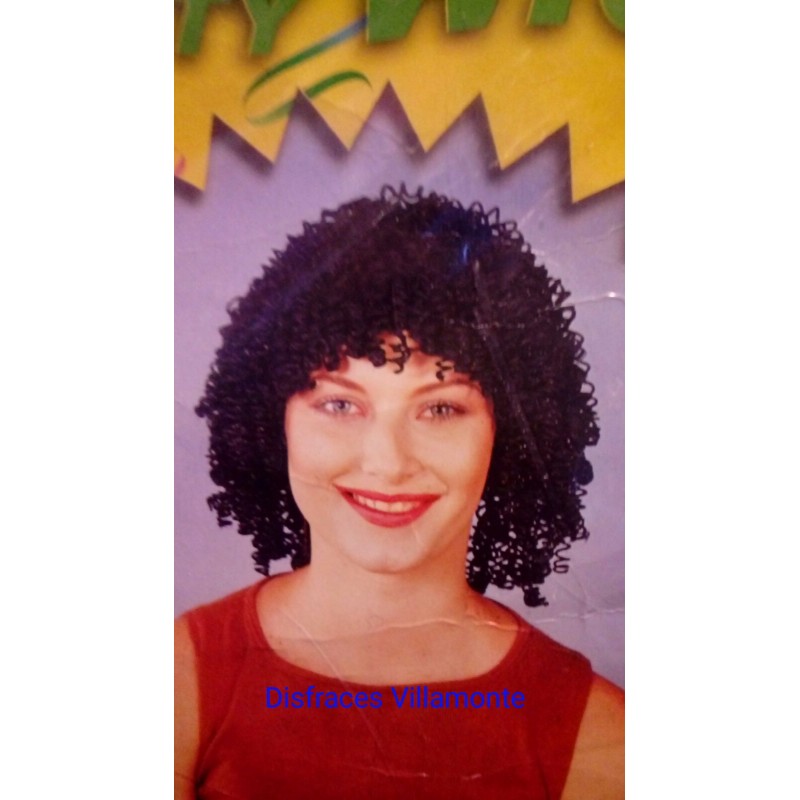 Peluca corta rizitos, flequillo y corta ,color castaña