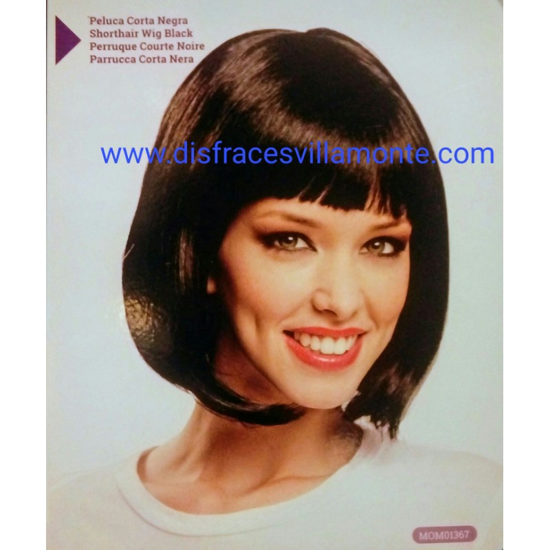 Peluca de Cabaret o Charlestón de media melena lisa con flequillo negra. Ideal para tu disfraz de Charlestón, de Moulin Rouge, Cabaret, etc... También sirve para despedidas de soltera. ¡¡No te lo pienses!!