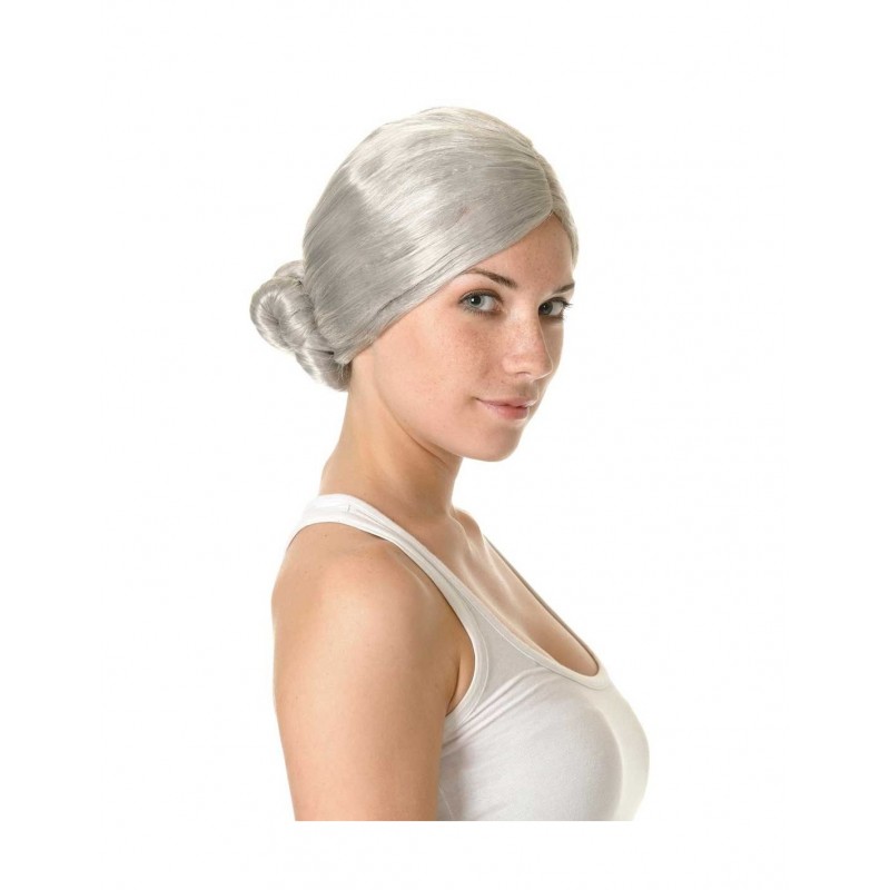 Peluca anciana,señora mayor,moño con raya en el centro y moño detras