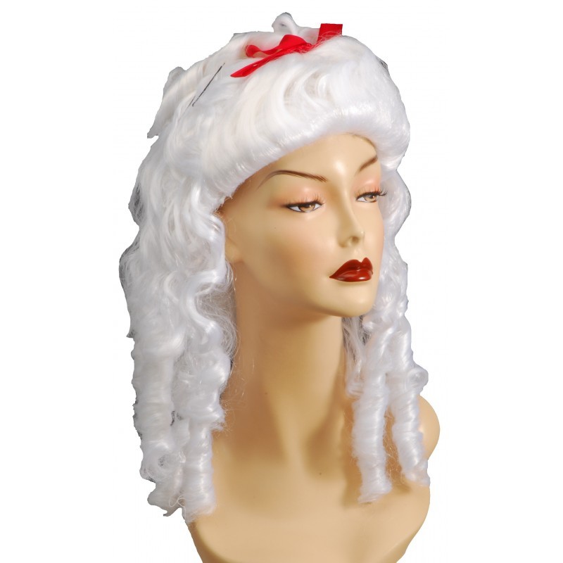 Peluca de epoca Tirabuzones,color Blanca y lazo rojo