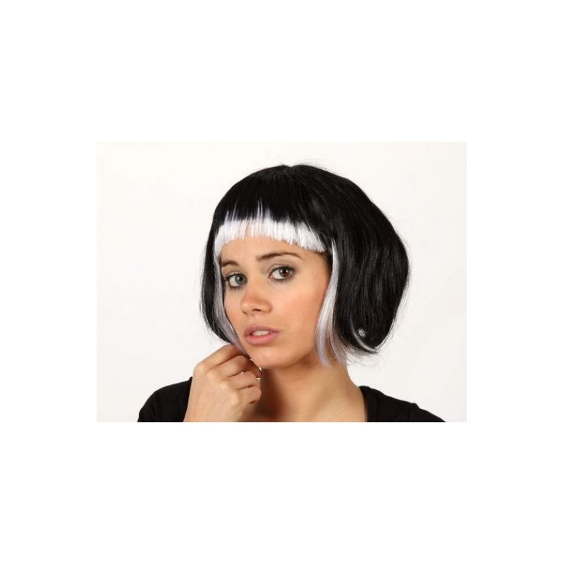 Peluca Negro Con Blanco y Flequillo. Para Vampiresa ,Bruja...