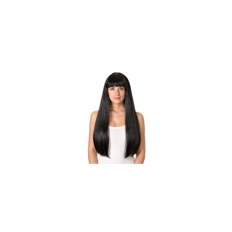 Peluca Cleo Negra Lisa con Flequillo,Negra.