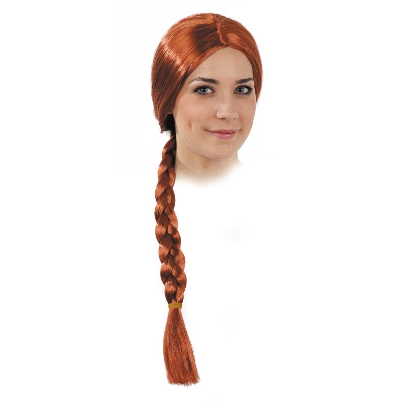 Si te gusta la pelicula de Shrek y tu traje es de Fiona, esta peluca es la tuya, una melena larga con raya en medio con una trenza de coleta. Es el complemento perfecto para el traje de princesa, de campesina o incluso de romana.