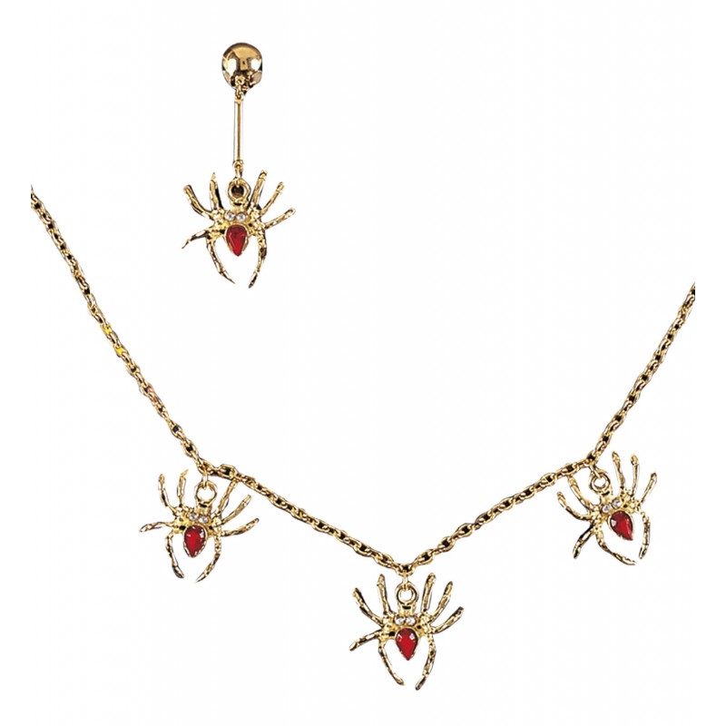 Set de collar y pendiente dorado con arañas..perfecto collar dorado con 3 arañas y 1 pendiente ,llevan perlitas de jios y perla roja de tripa..