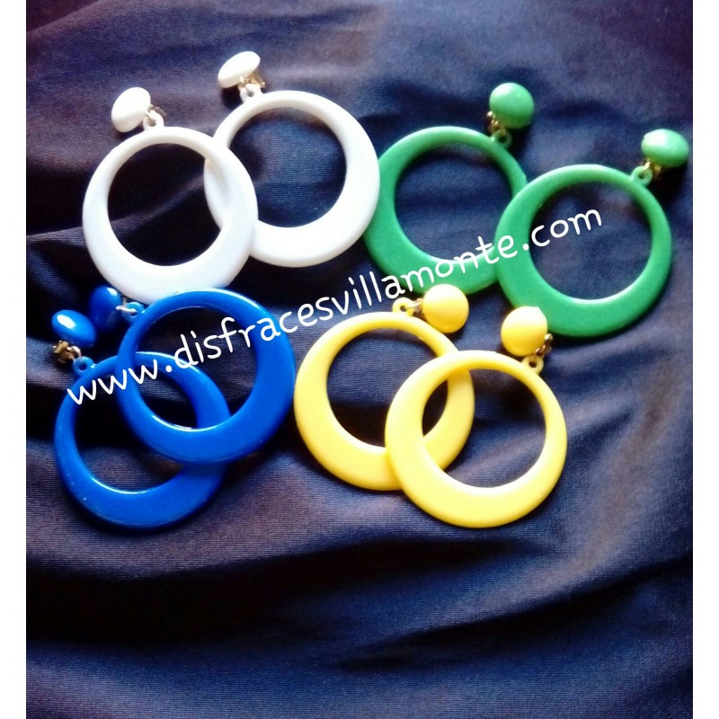Pendientes de Sevillana de 6 cm. ..Precio por un par, se venden por separado. El complemento ideal para los disfraces de Sevillana, Flamenca, Cordobesa, Gitana, etc. Colores surtidos: azul,verde,amarillo y blanco