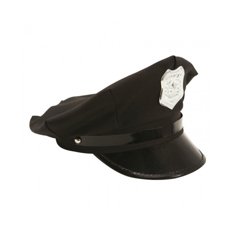 Gorra de Policía..clasica en color negro.Complementa tu disfraz con esta gorra,asi detendras a muchos-as y pondras orden